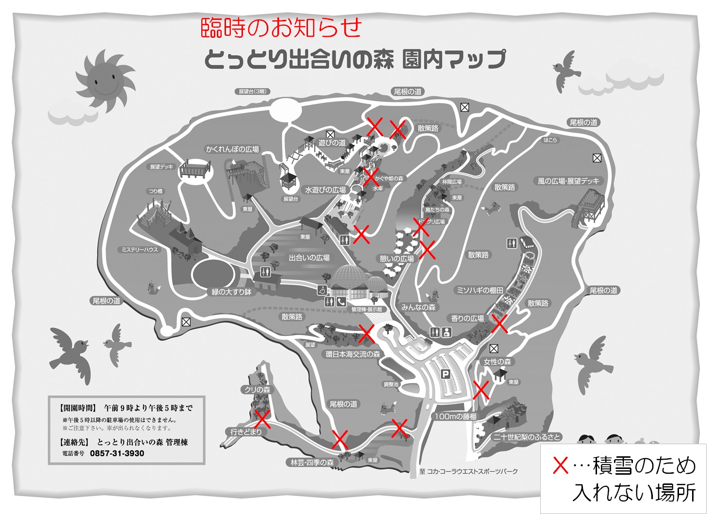 大雪などの時は、除雪状況により開園が遅れる場合があります。