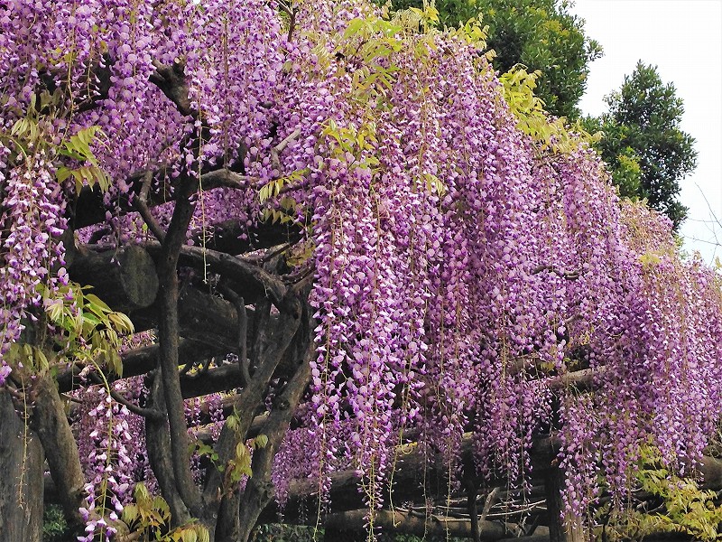 100mの藤棚、いま見頃です。例年通りG.W連休に開花を合わせてくれています。お弁当持って、ゆったりくつろぎに来てください。