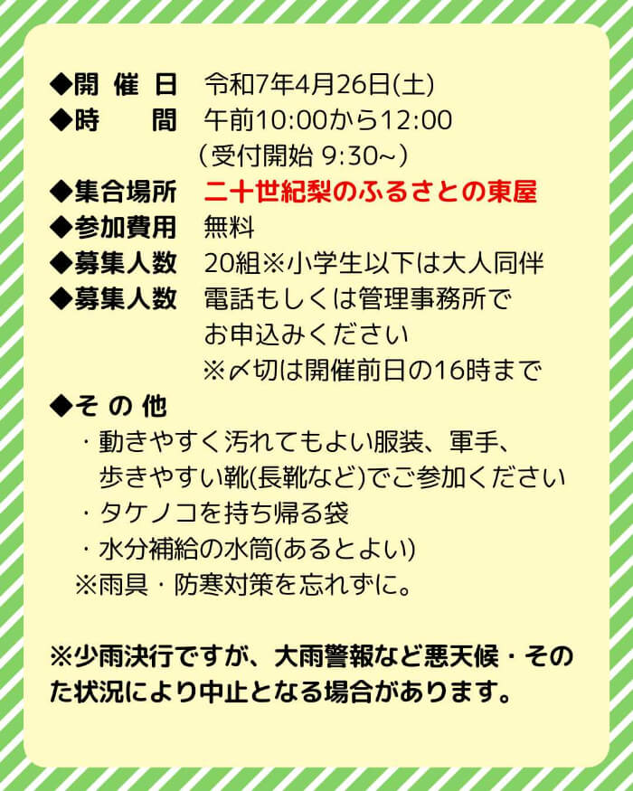 【イベントのお知らせ】タケノコを掘ろう【申込受付終了】