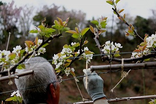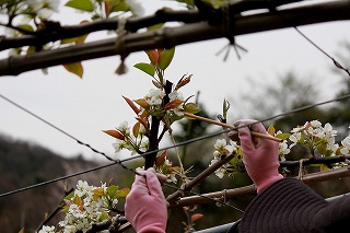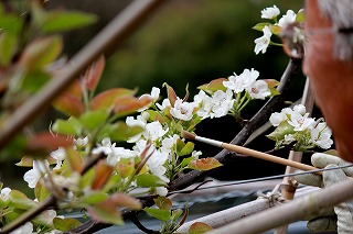 先週20世紀梨の交配作業が行われました。親木は3本あり今年で112歳になります。職員の方4人体制で、ひとつひとつ筆で丁寧に交配作業を行っておられました、秋には元気に見事な長寿梨が生ります。楽しみですね。