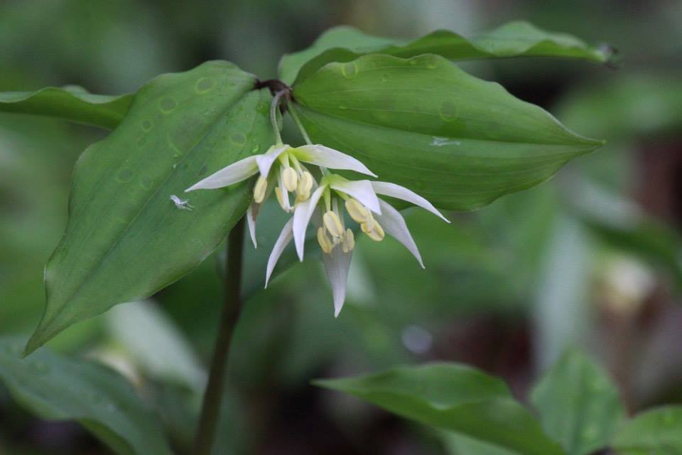 下向きに咲くので、上から見下ろし探しても、葉の陰に隠れ見つけにくいです。黒い実が生ります。
