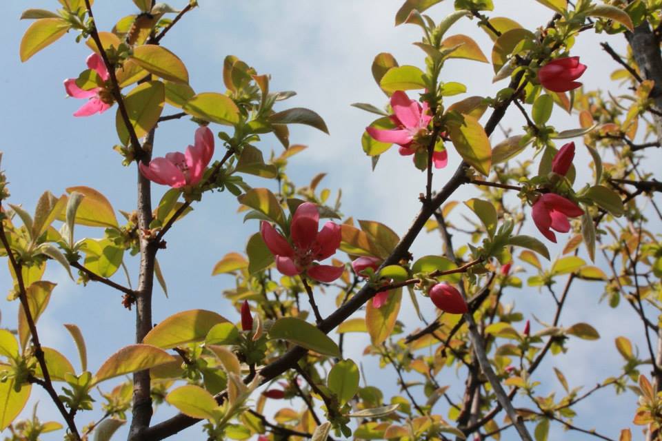 木肌が美しく、果実にも風情があるので、庭木や盆栽にも用いられます。紅色の花色が特徴的です。