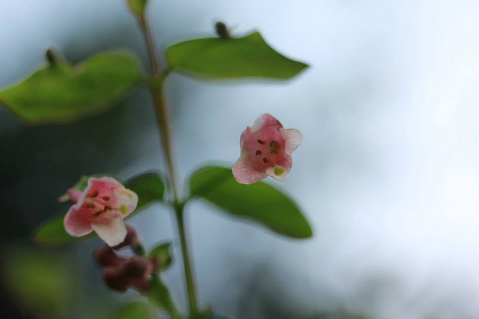 名は、花を能楽で使う能装束の空想上の「猩々」(ショウジョウ、オランウータンの意味もある)の赤い頭の毛と見立て、花の下の葉を袴(ハカマ)と考えたものだと言われているようです。面白い形の花ですね。